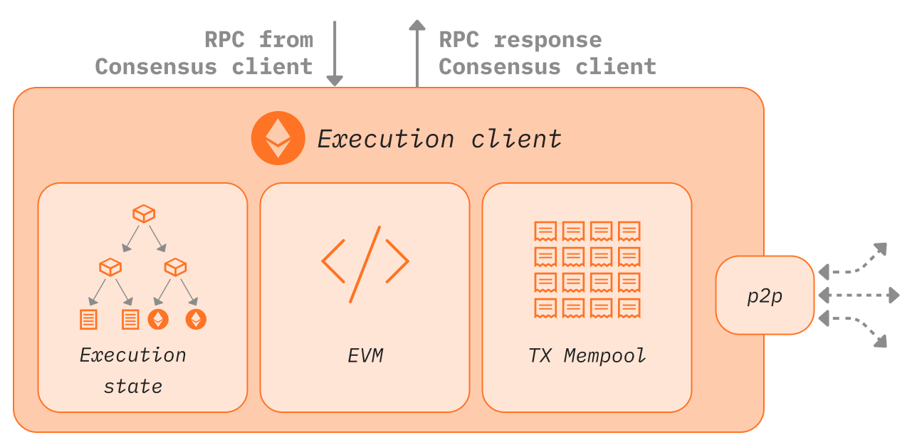 Network layer schematic for consensus and execution clients, from ethresear.chopens in a new tab